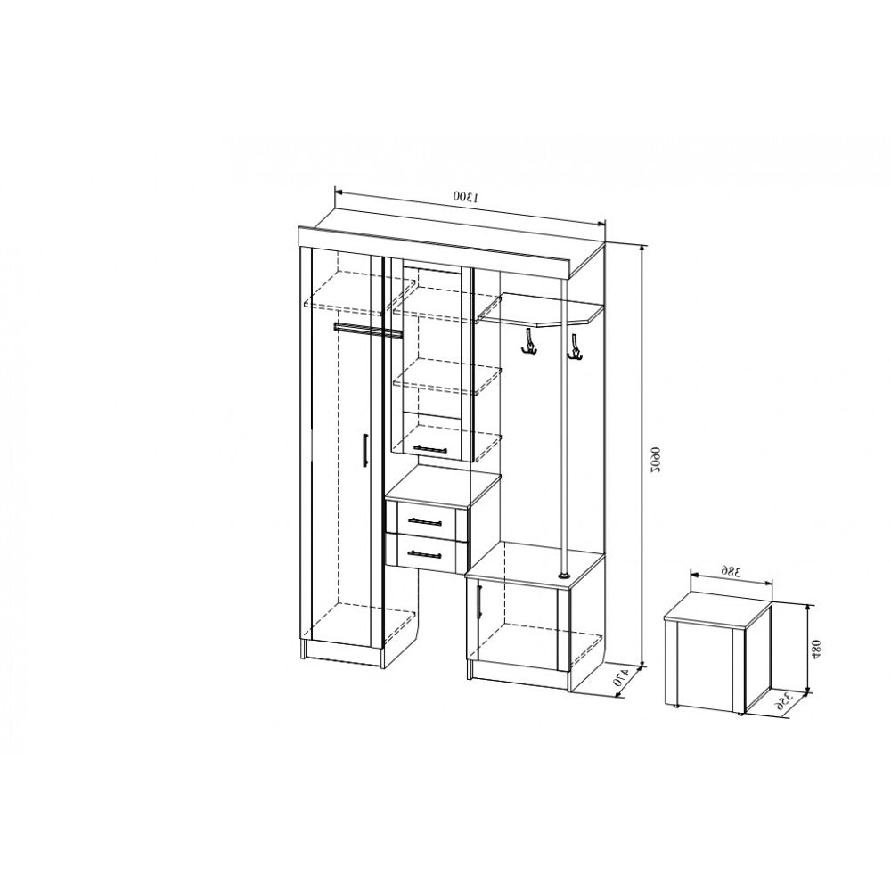 ● Cuier (1x): Lungime 130 x Adancime 47 x Inaltime 209cm