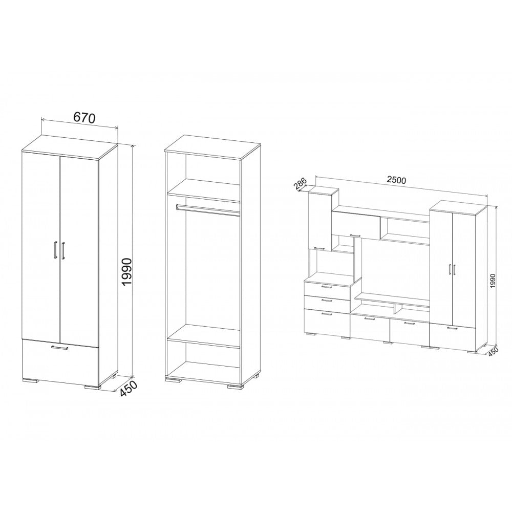 ● Lungime 250 x Adancime 45 x Inaltime 199cm