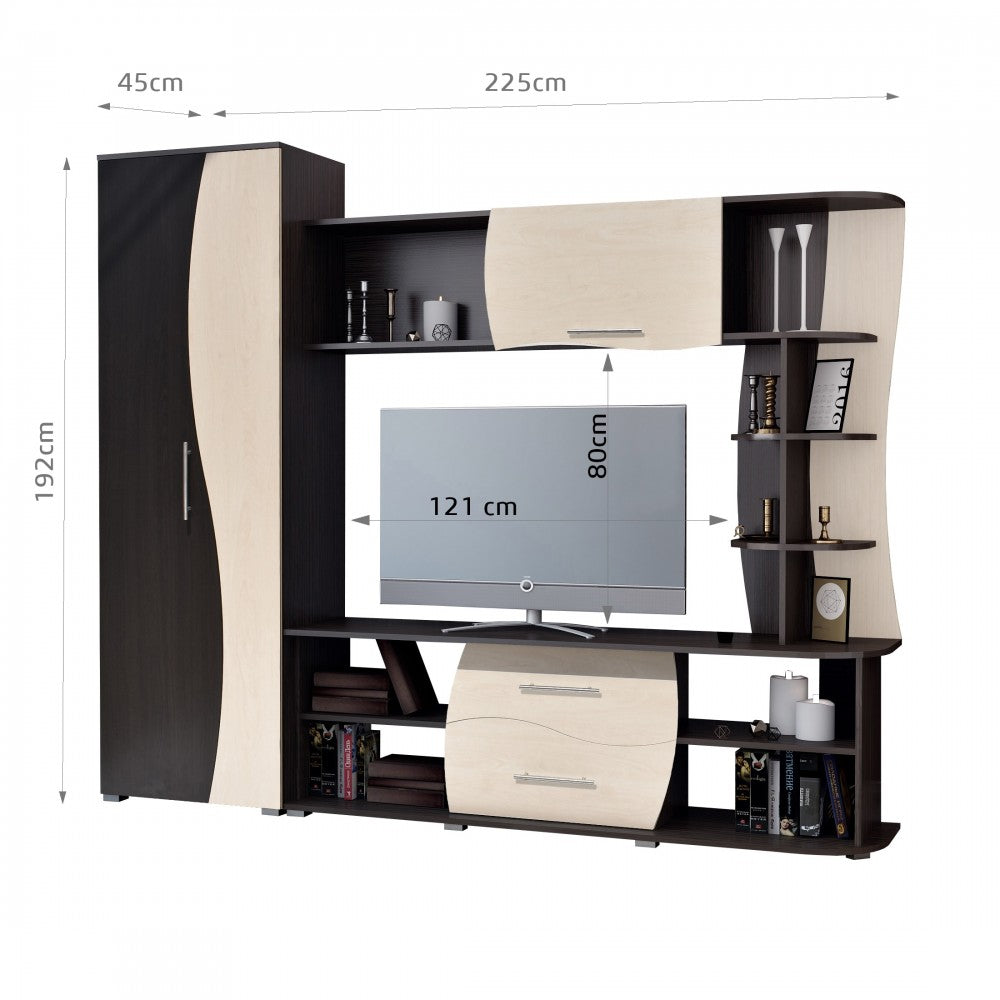 ● Corp Superior TV (Vitrina): Lungime 165 x Adancime 29 x Inaltime 119cm