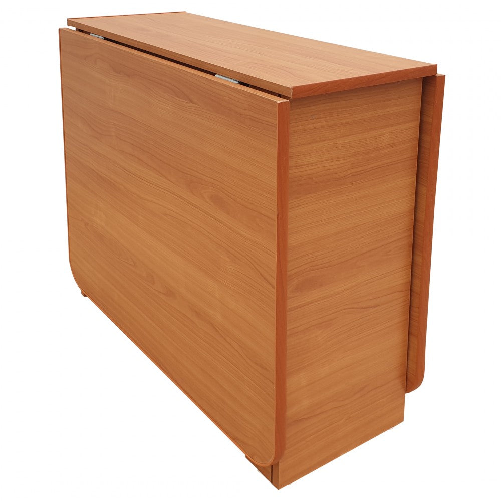Este o masa plianta, realizata din PAL melaminat, ce permite reglarea dimensiunii, prin ridicarea uneia sau a ambelor parti, in functie de necesitate. Cele 2 parti laterale sunt sustinute de un cadru de PAL, ce se roteste cu usurinta datorita balamalelor cu care este prins.