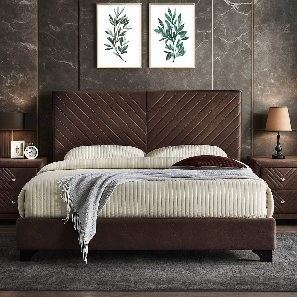 Calitate: Fabricat meticulos cu materiale de înaltă calitate, patul nostru este construit pentru a rezista. Cadrul robust din lemn asigură durabilitate, în timp ce tapiteria premium adaugă o notă de opulentă.